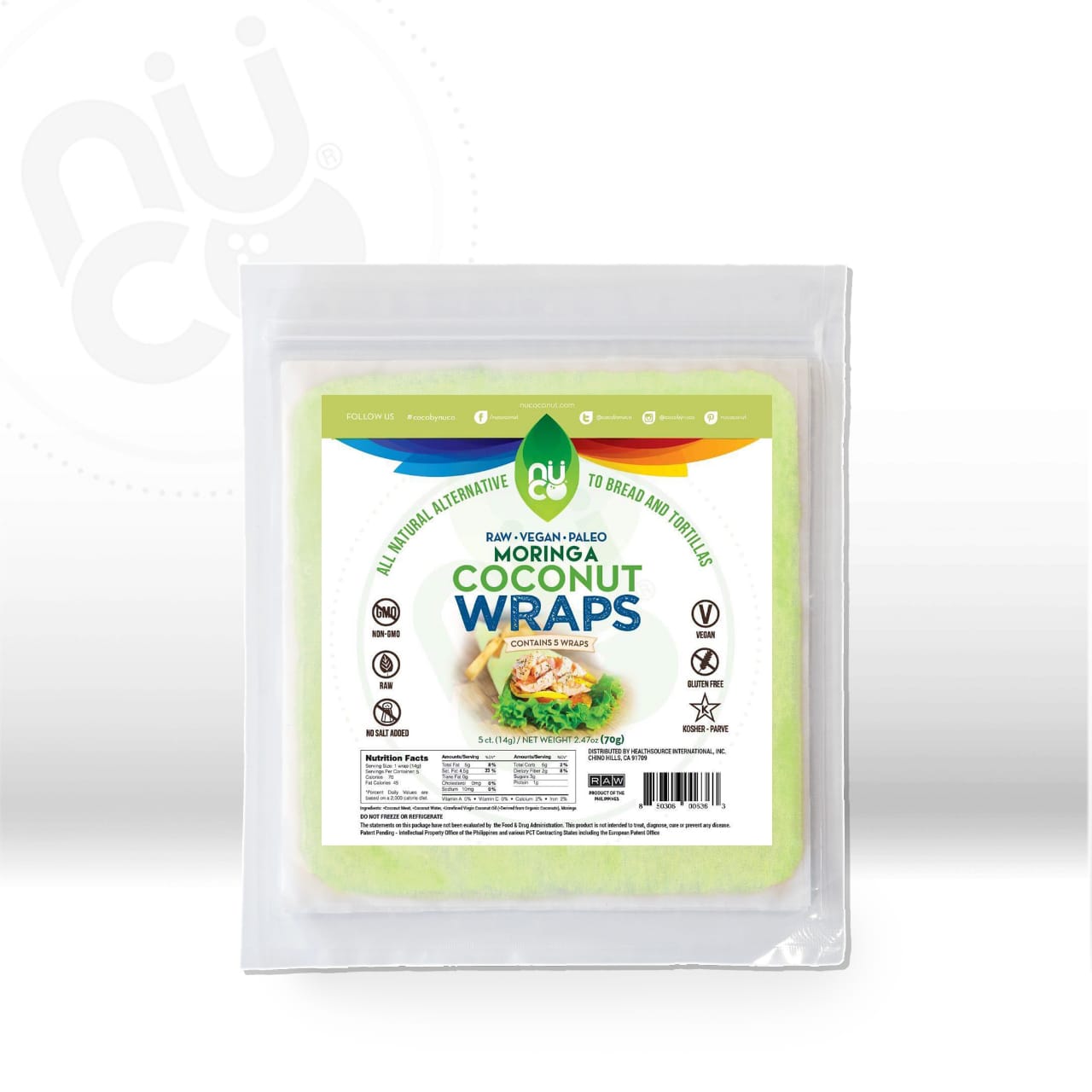 NUCO Coconut Wraps (One Pack of Five Wraps), 5 Count (Non-GMO) – Moringa