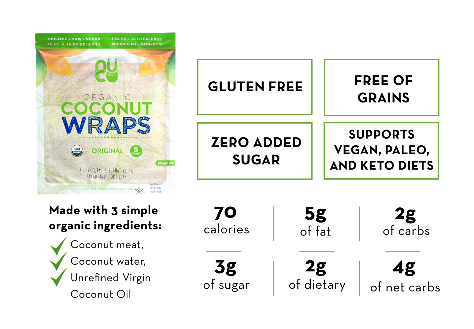 Coconut wraps are tasty, versatile and good for you. NUCO's Coconut Wraps are made with sustainability and ethically sourced organic coconuts from the Philippines. Create amazing Coconut Wrap dishes everyone will enjoy.